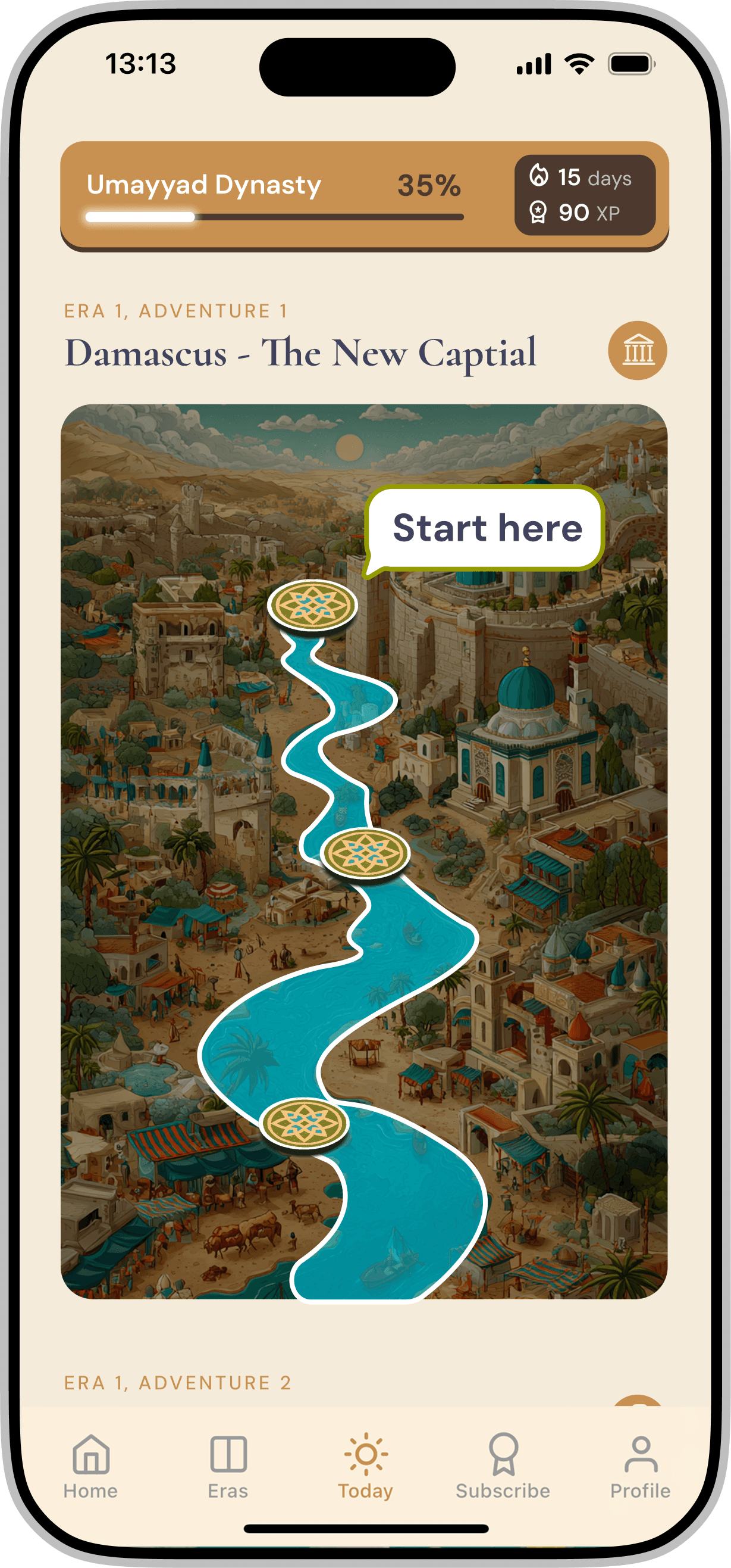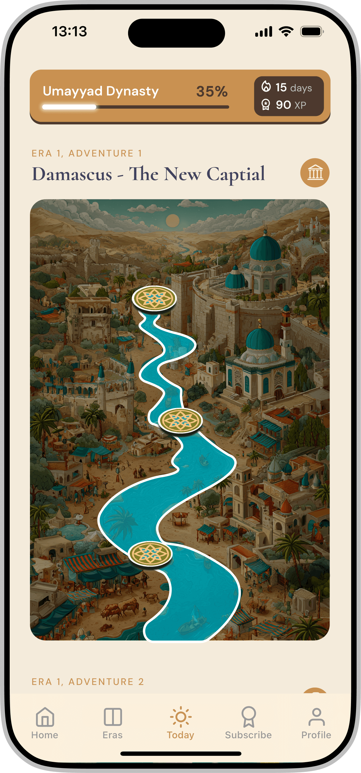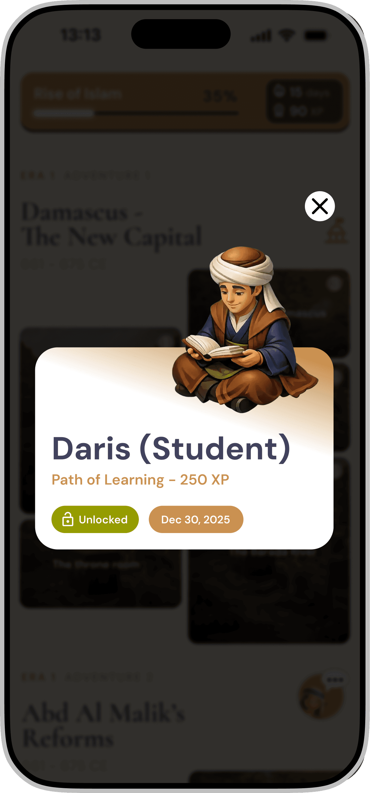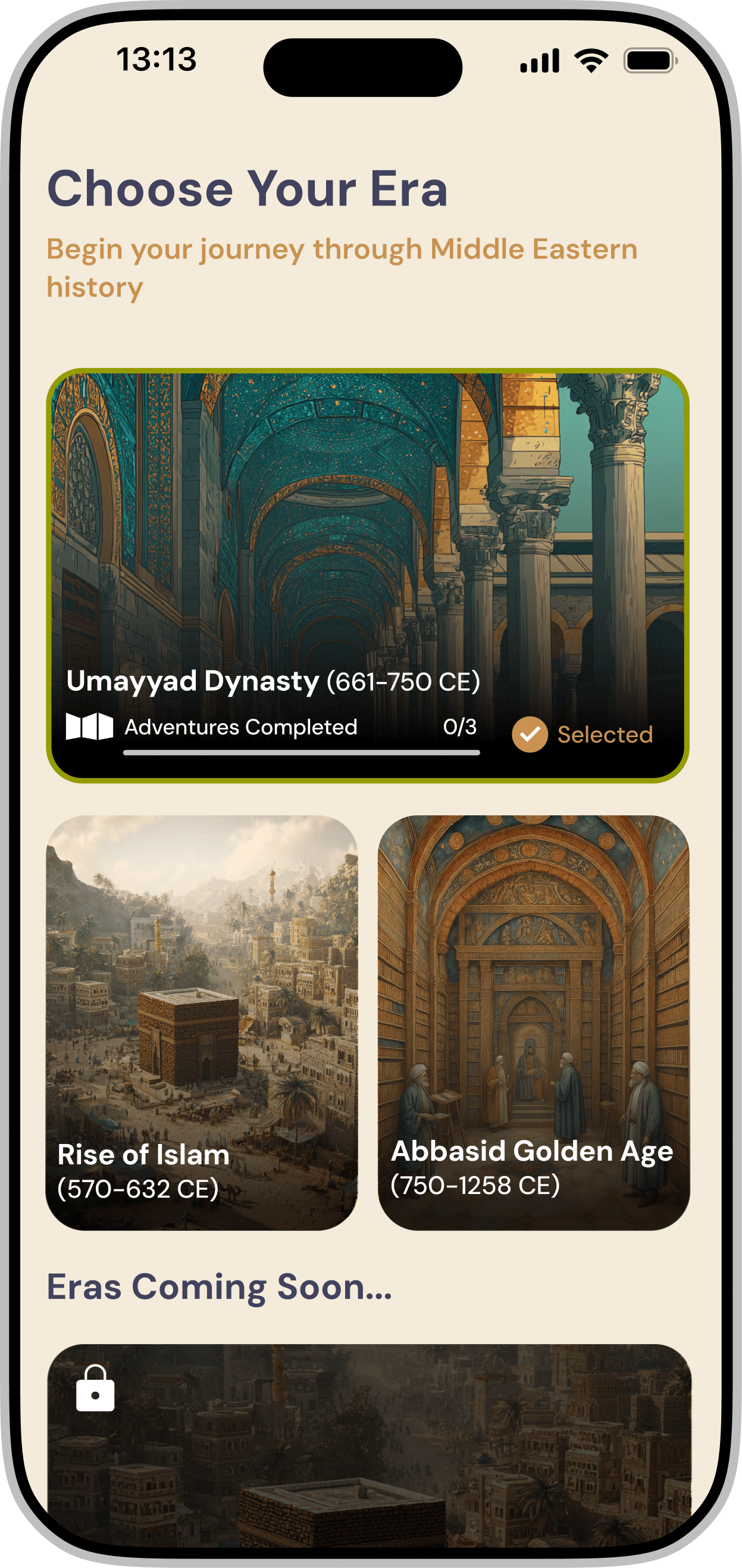 Redesigning a gamified mobile application for iOS & Android that introduces Middle Eastern history through interactive storytelling and character-driven experiences.