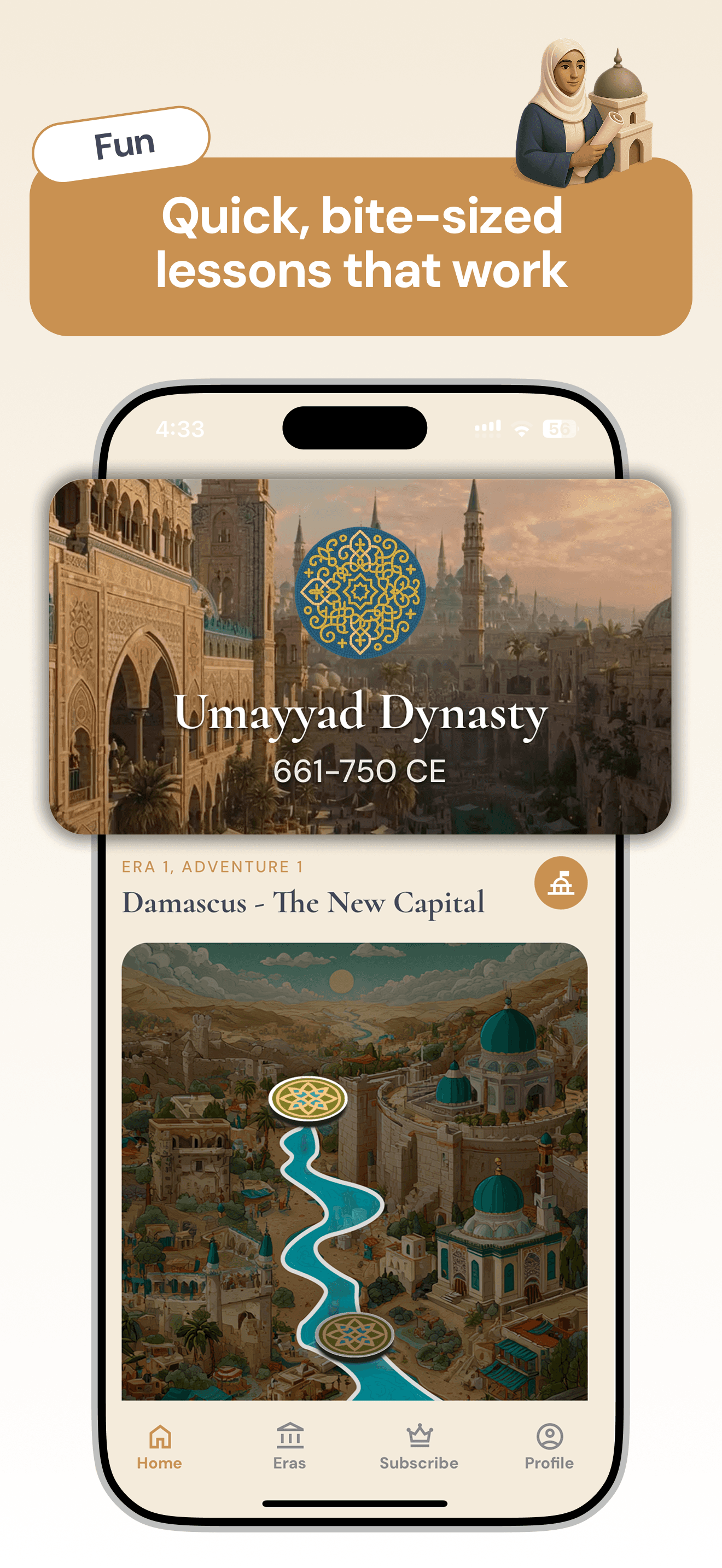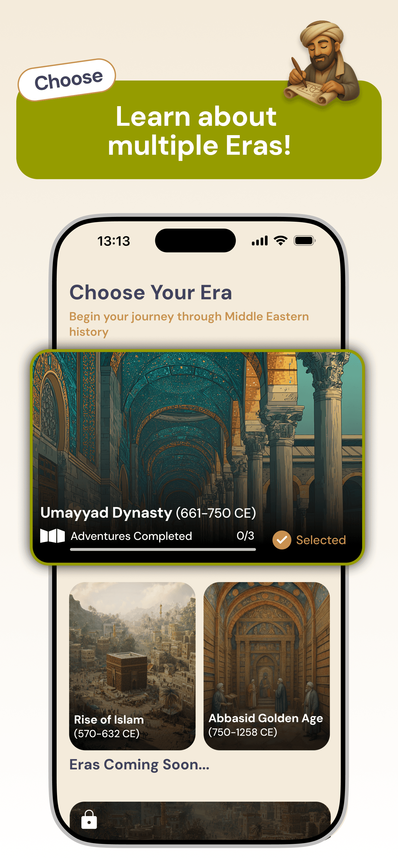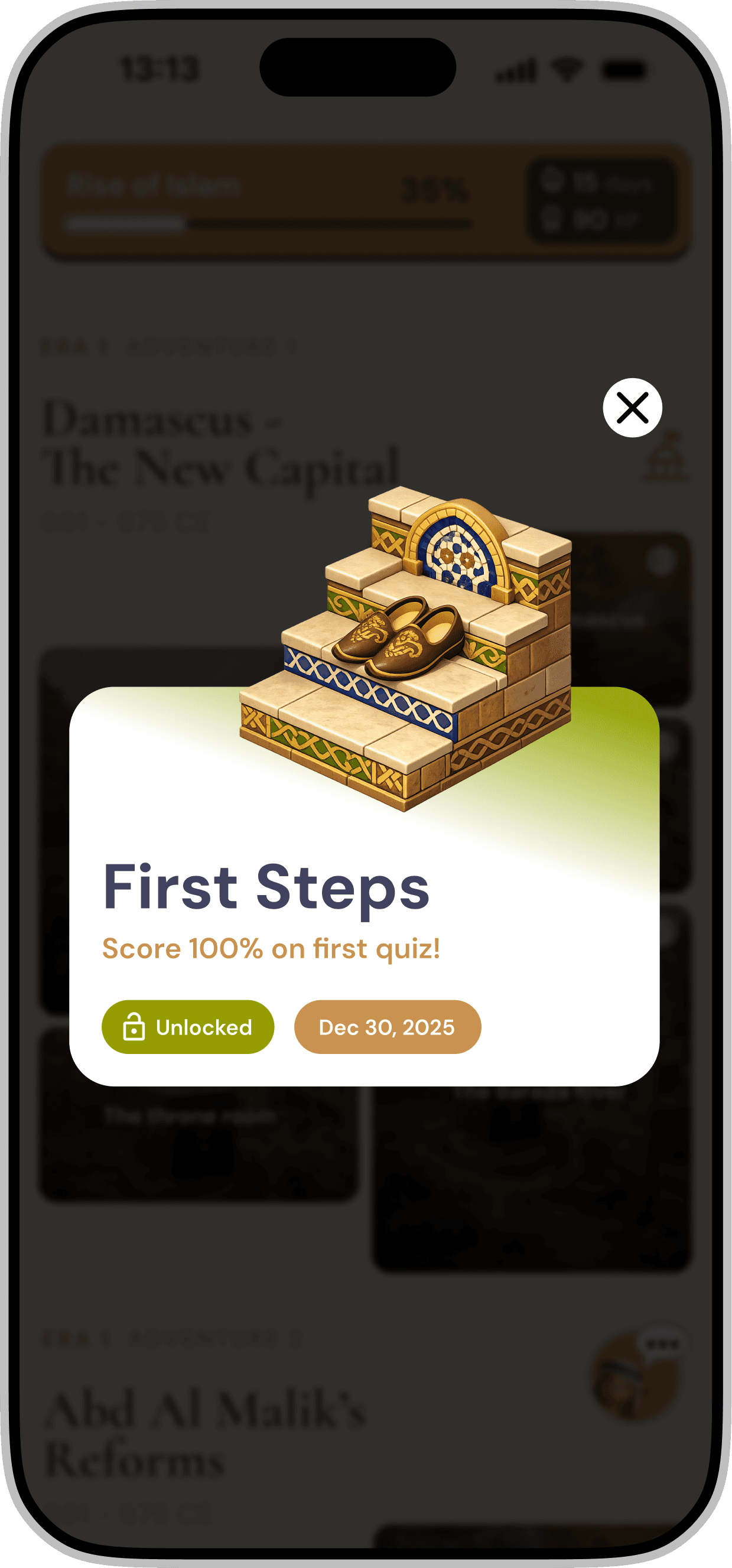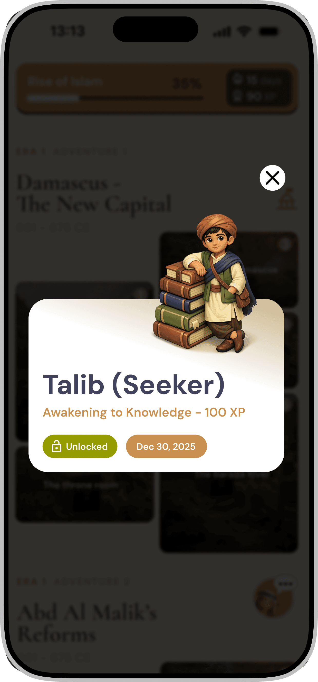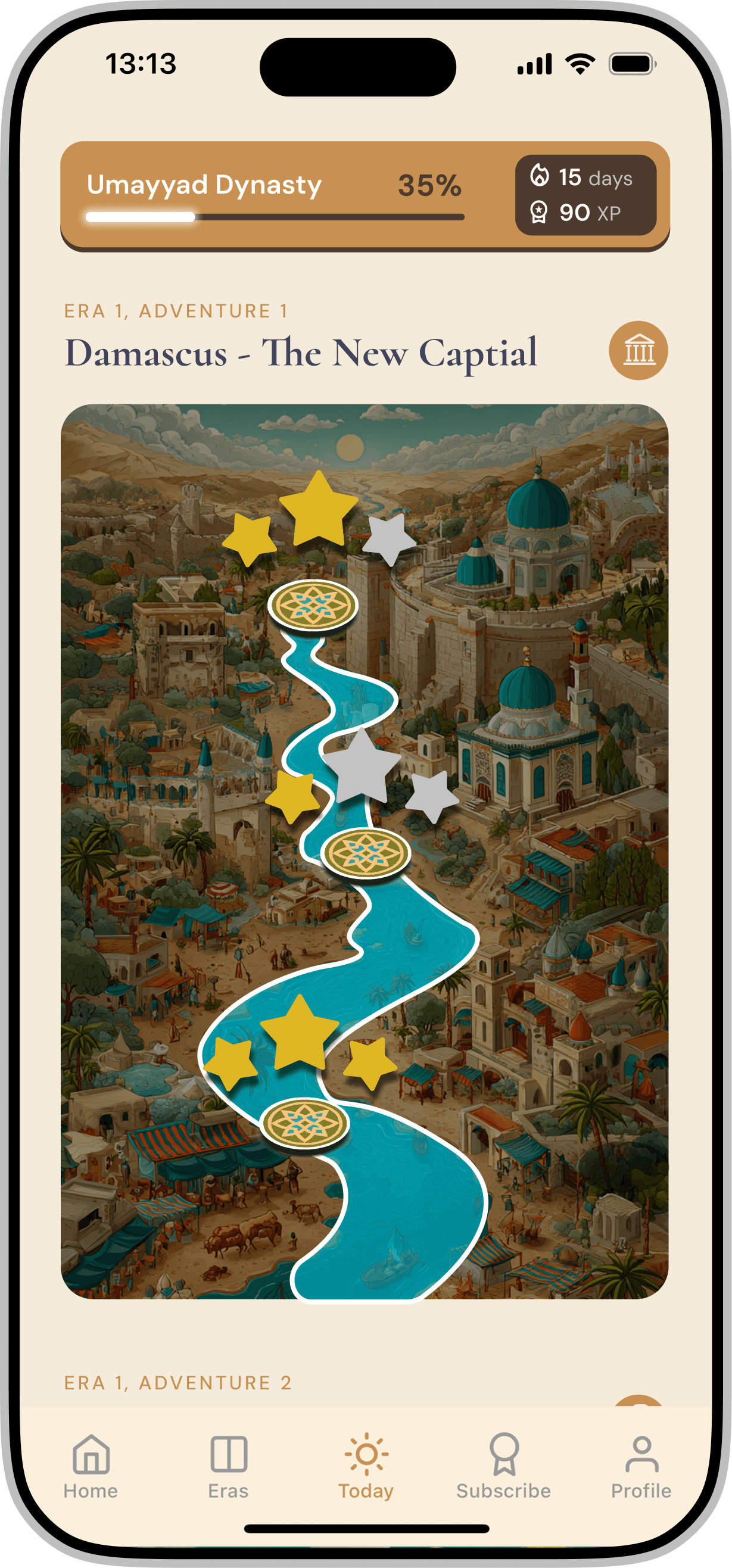 Redesigning a gamified mobile application for iOS & Android that introduces Middle Eastern history through interactive storytelling and character-driven experiences.