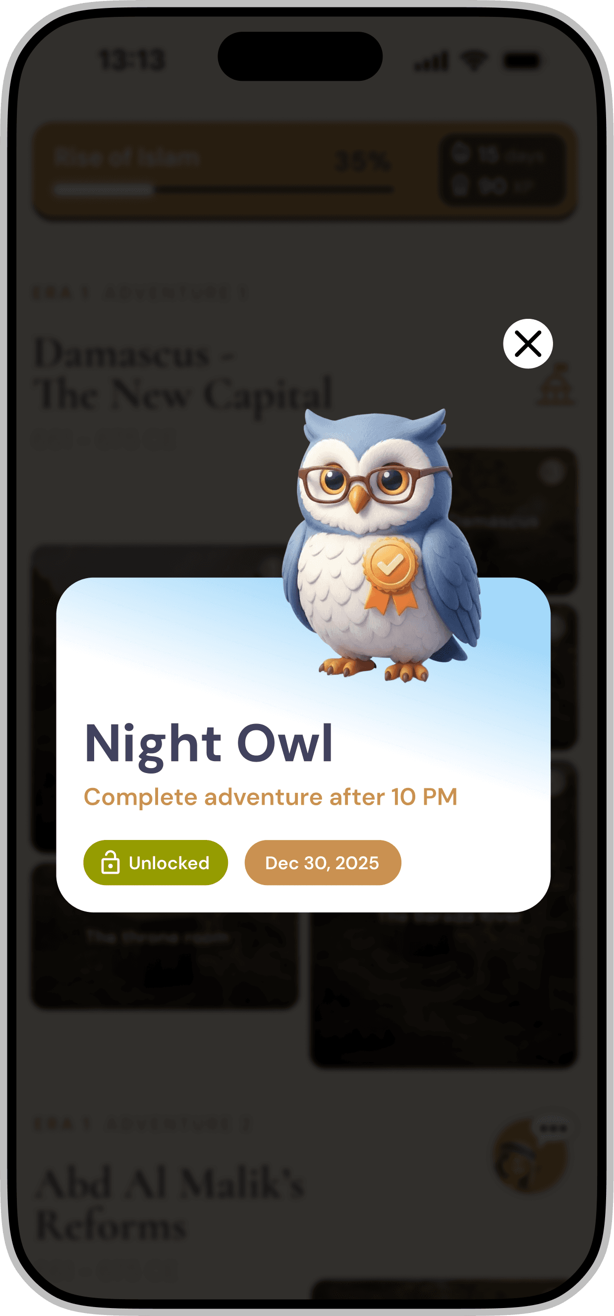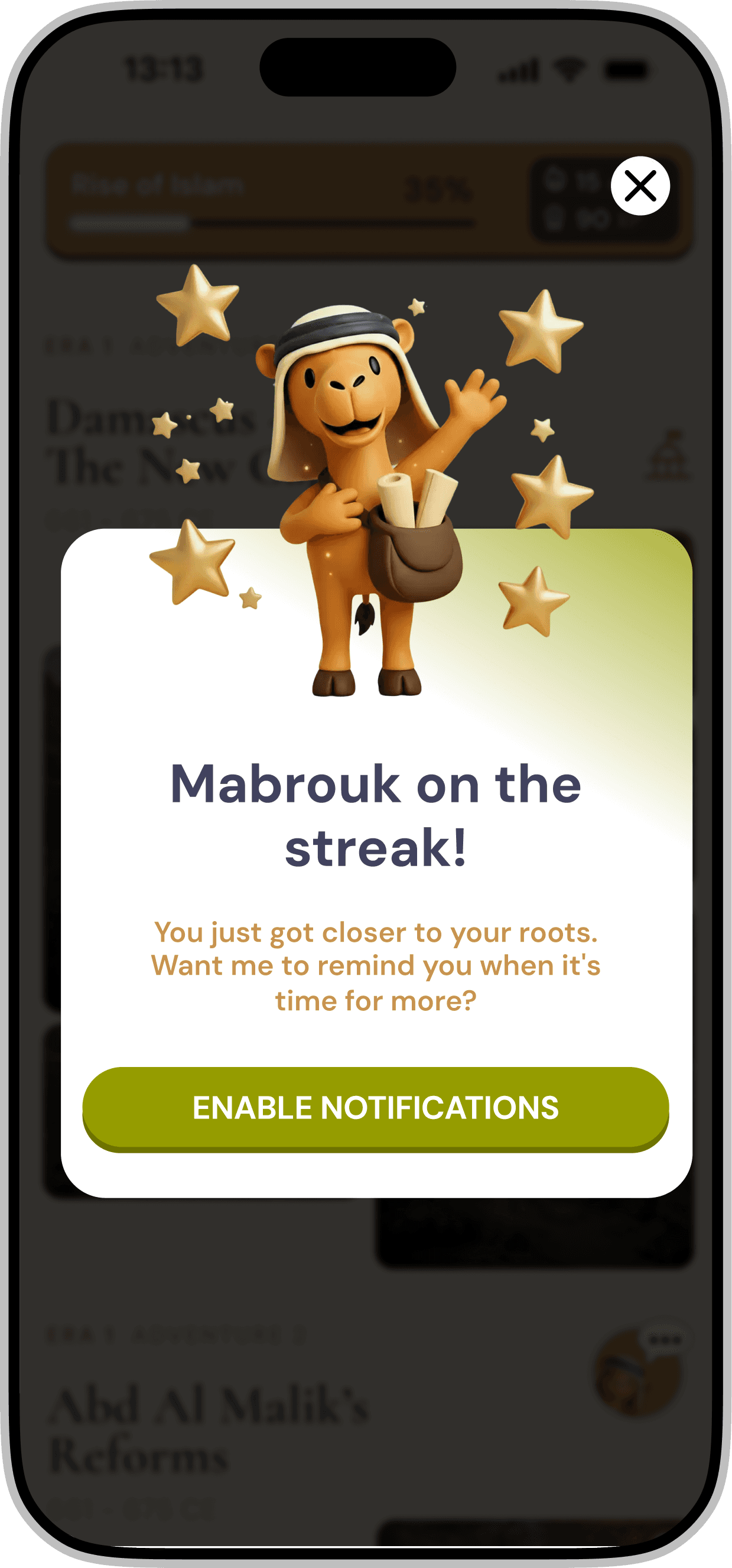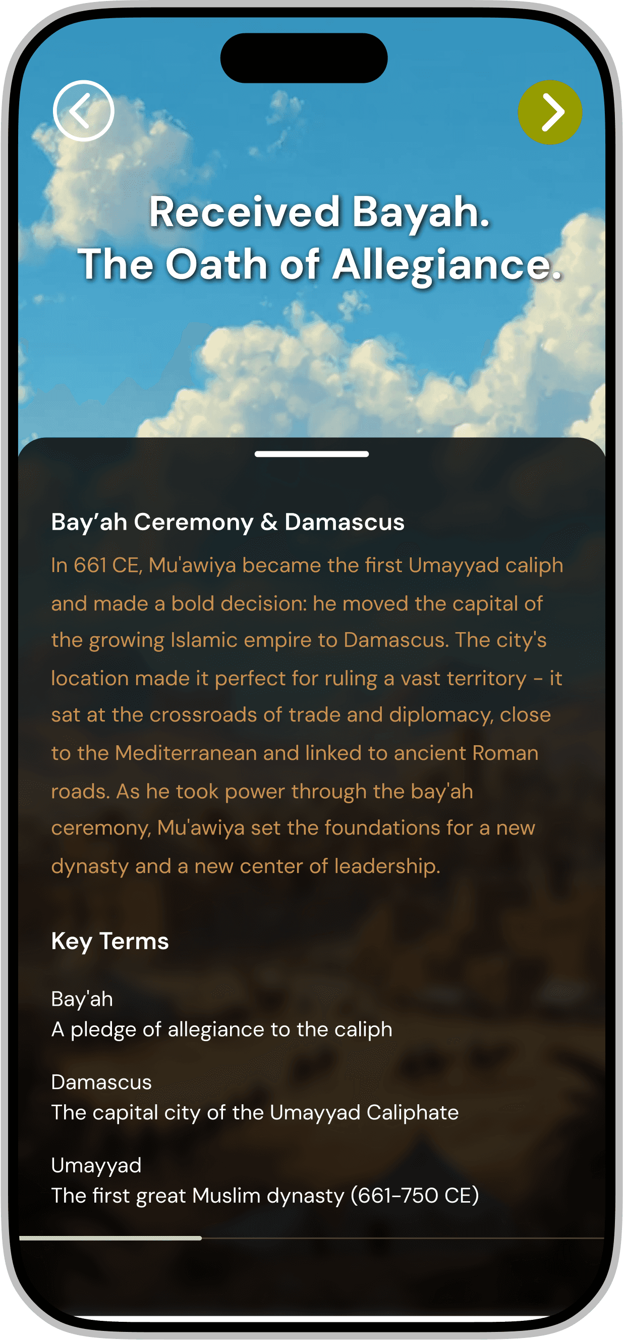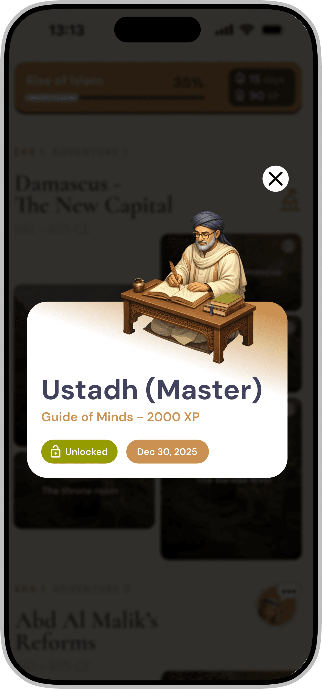 Redesigning a gamified mobile application for iOS & Android that introduces Middle Eastern history through interactive storytelling and character-driven experiences.