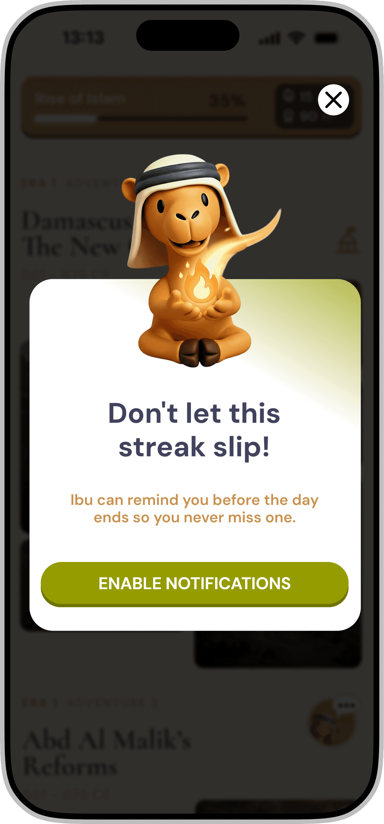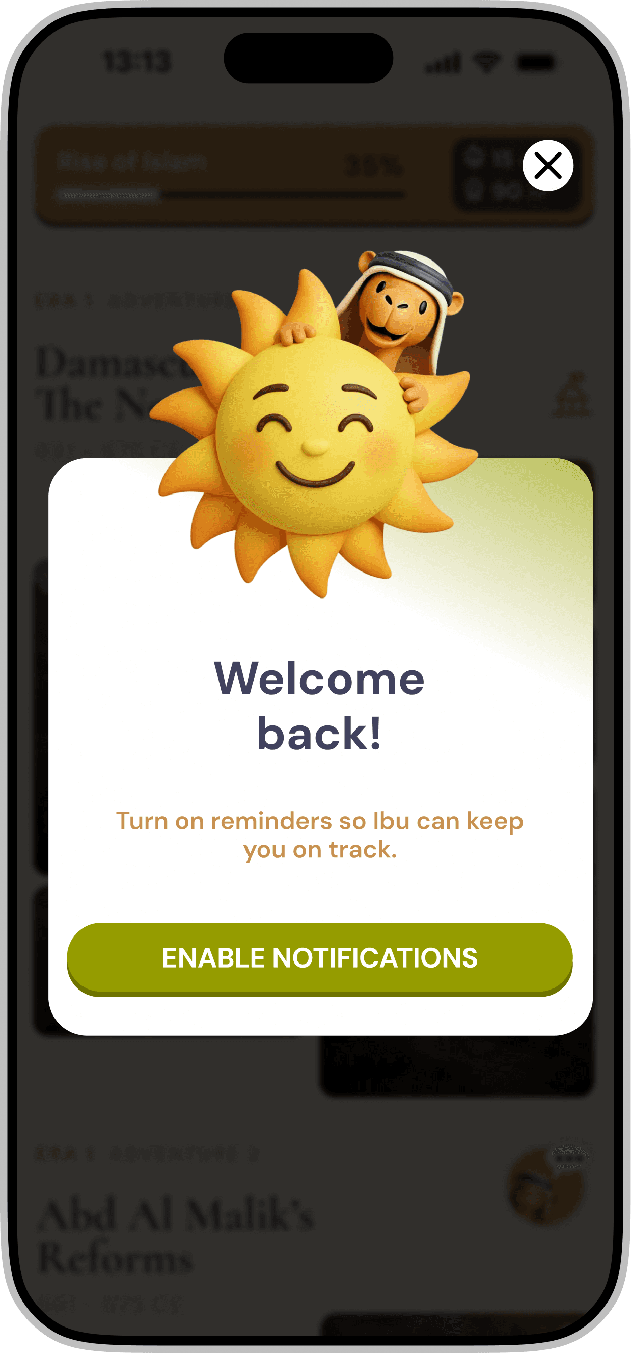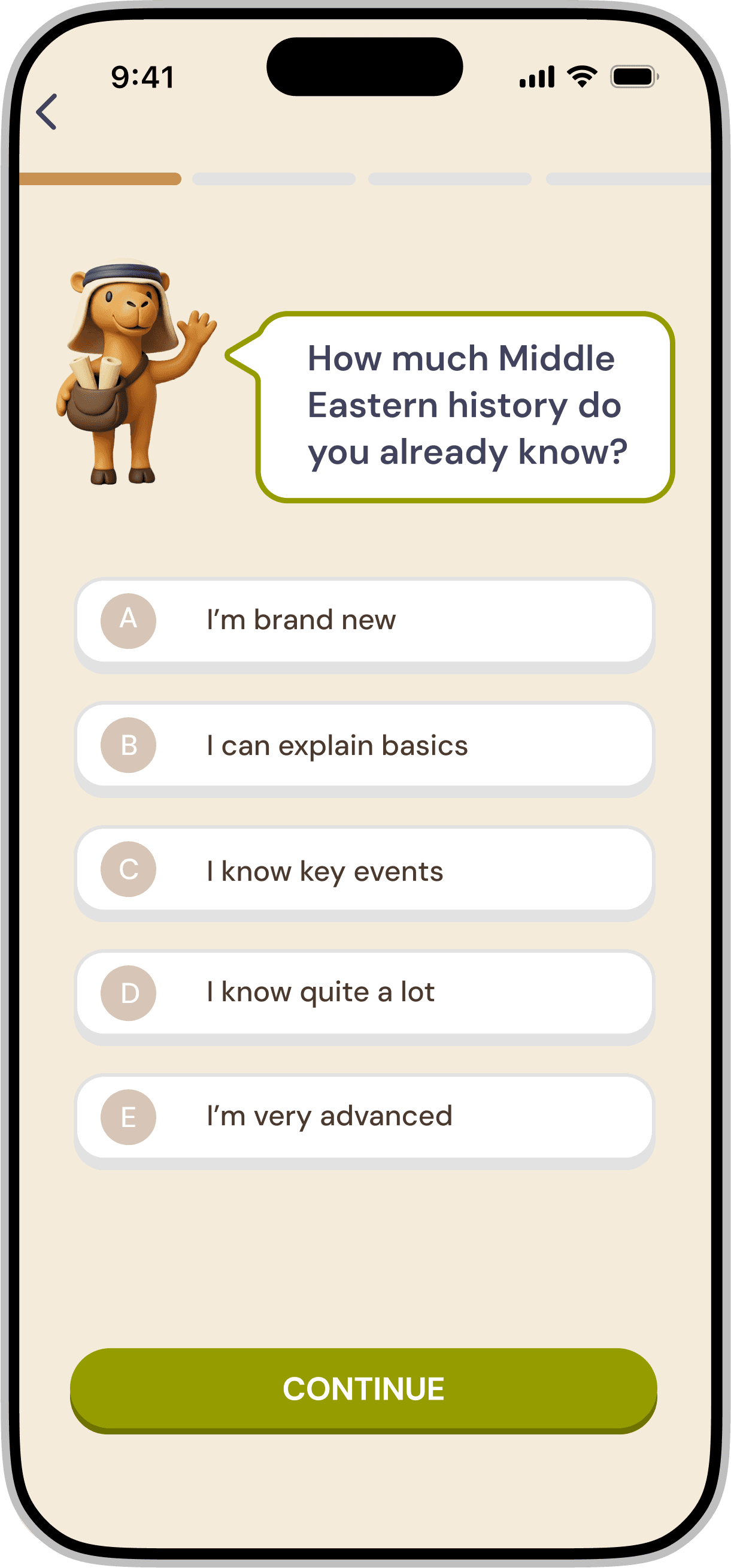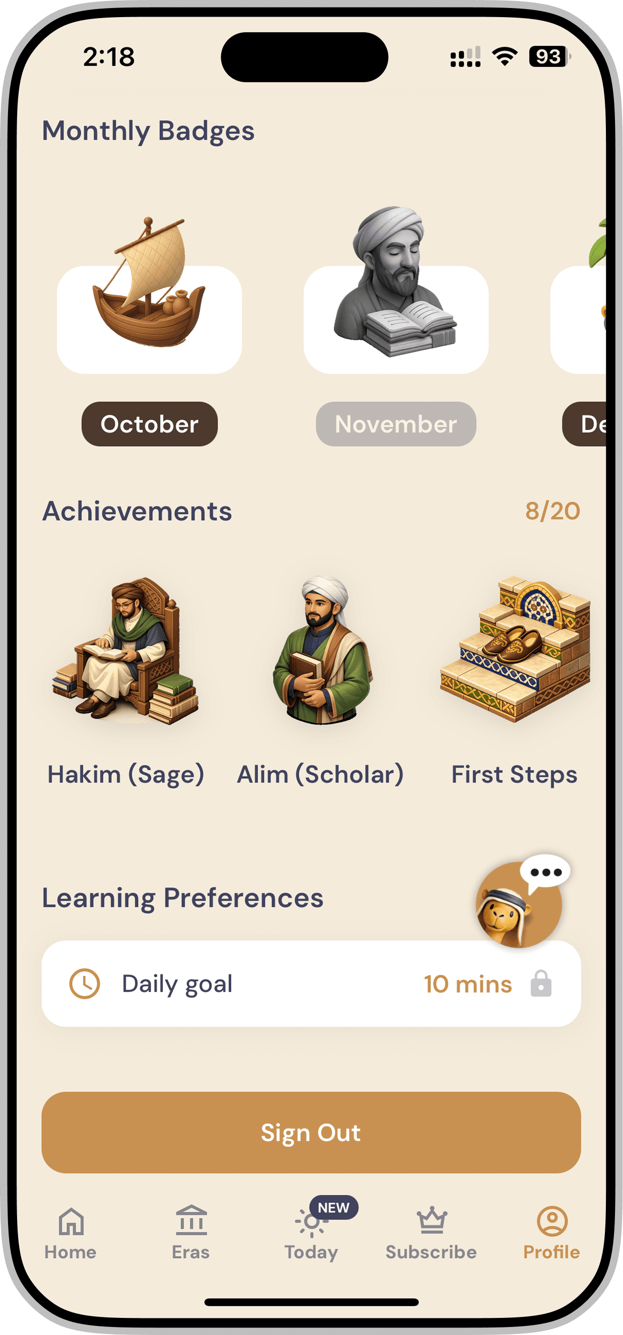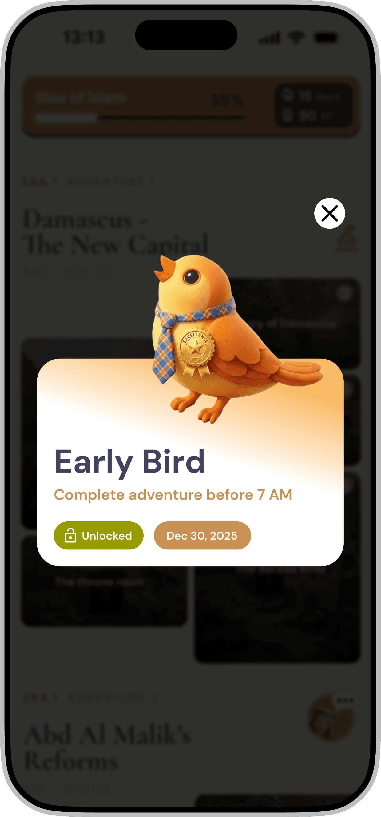 Redesigning a gamified mobile application for iOS & Android that introduces Middle Eastern history through interactive storytelling and character-driven experiences.