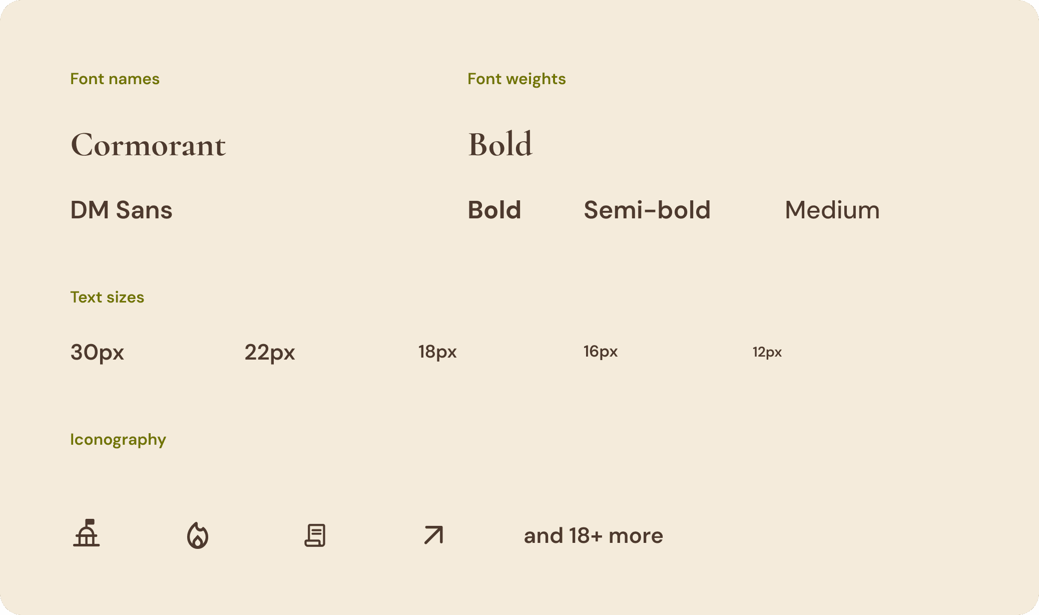 To ensure consistency across the product, I established a set of foundational design system elements that guide the visual and interaction language of the experience. These foundations include the color palette, typography pairing, and iconography system shown below.