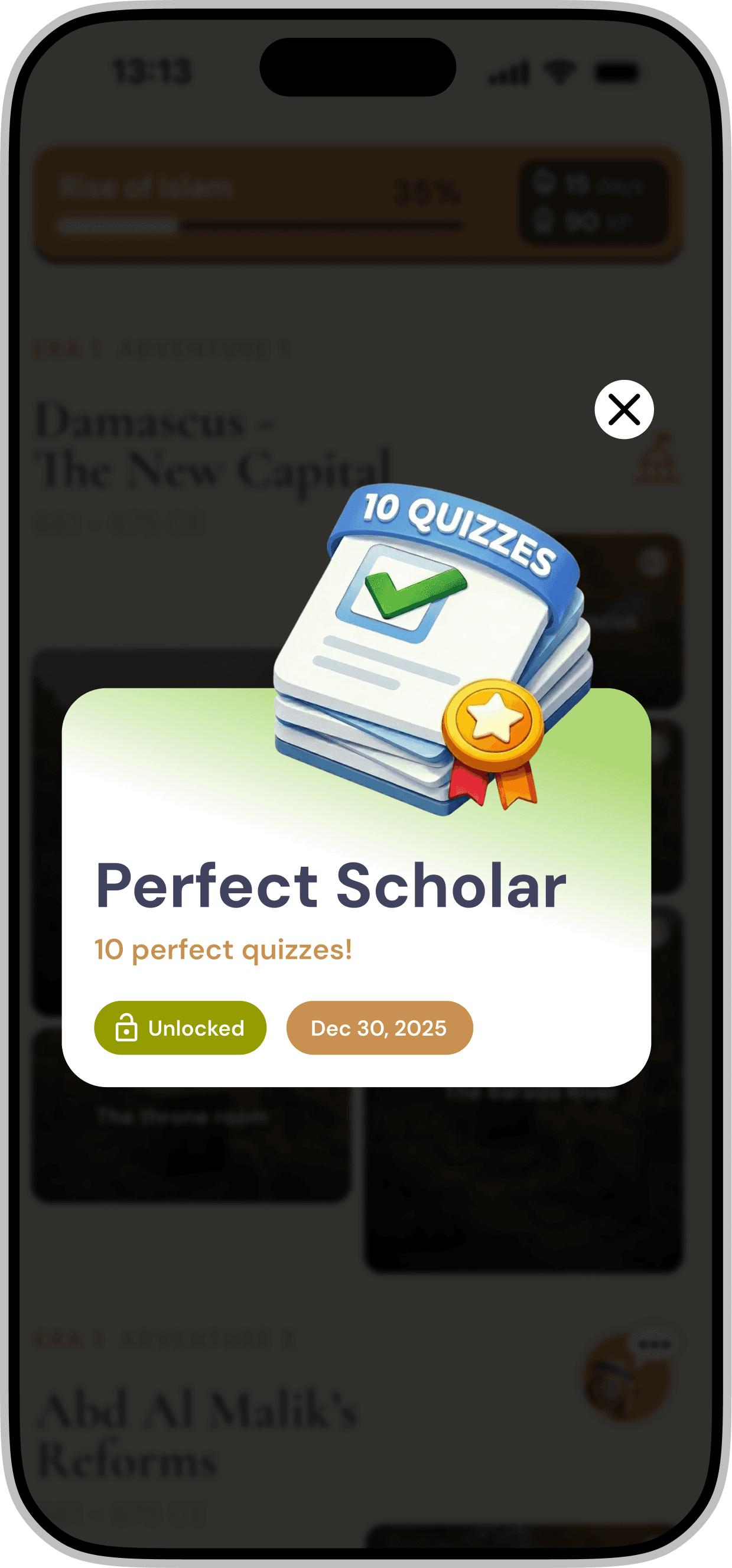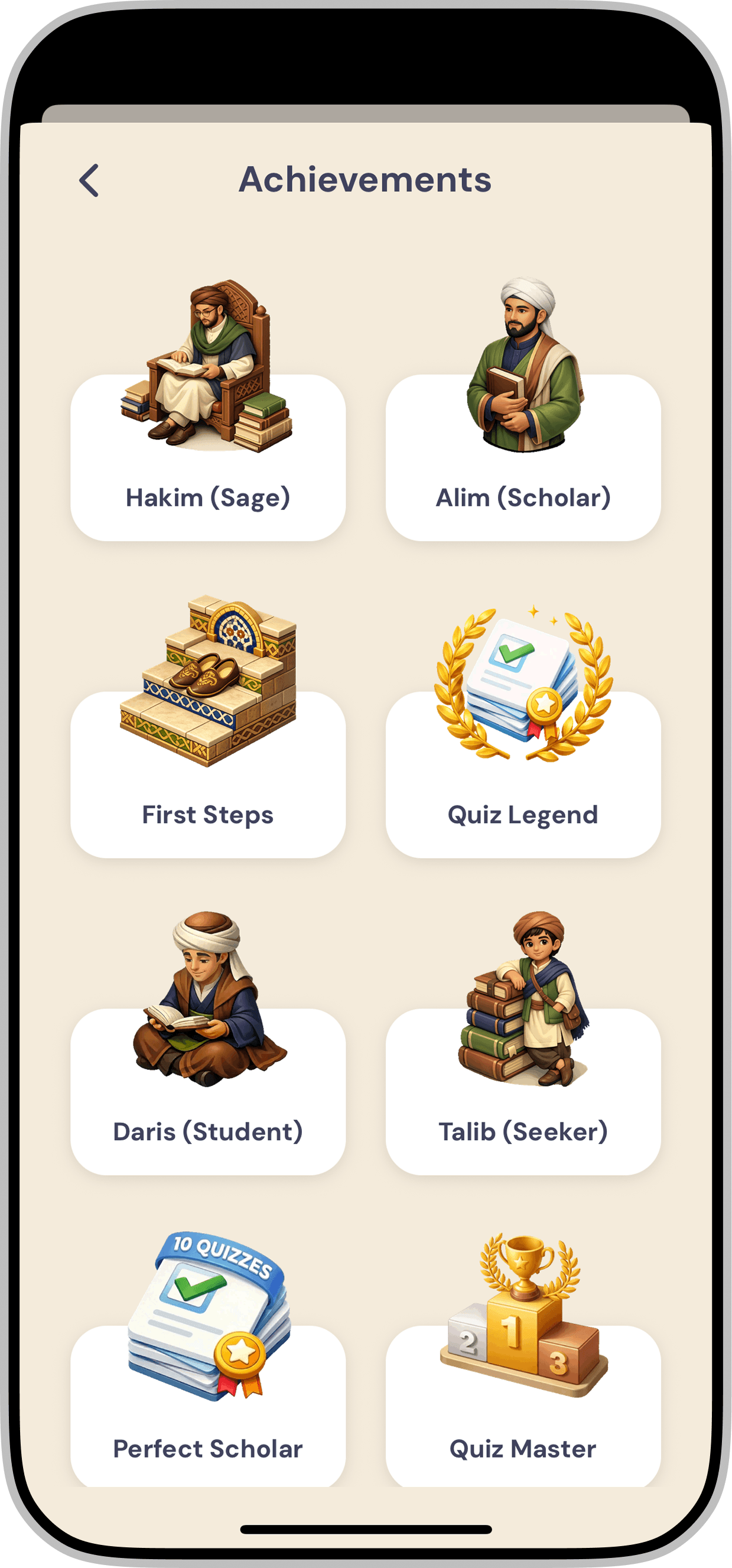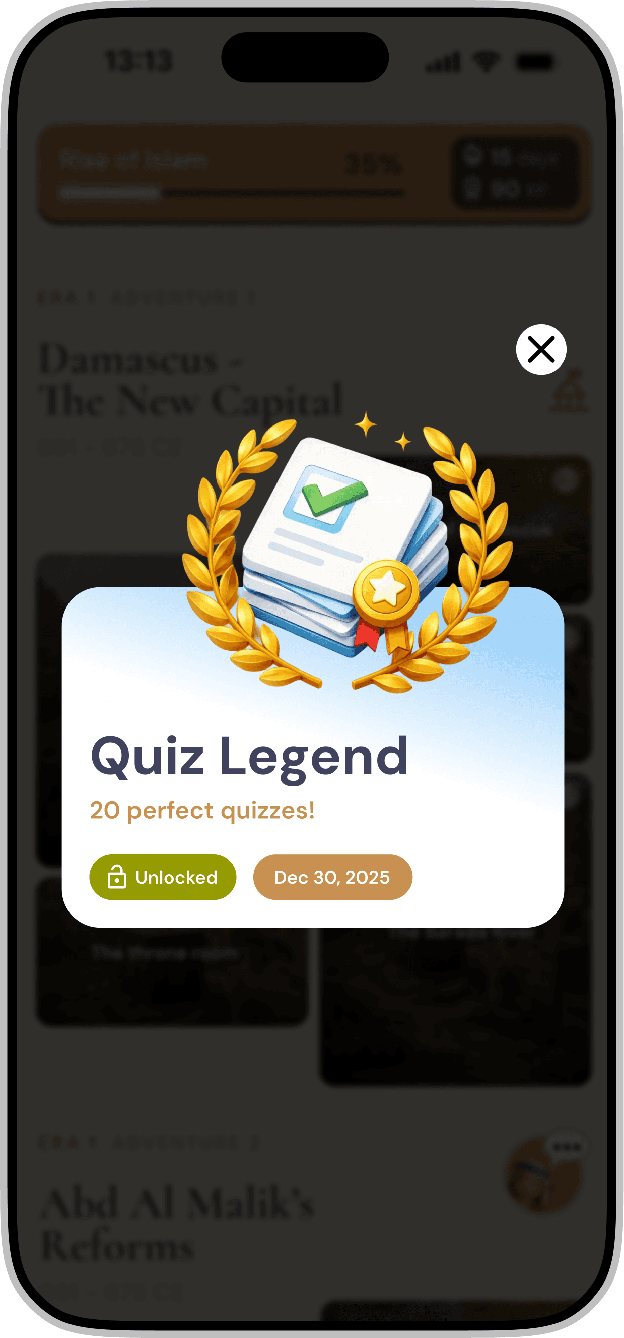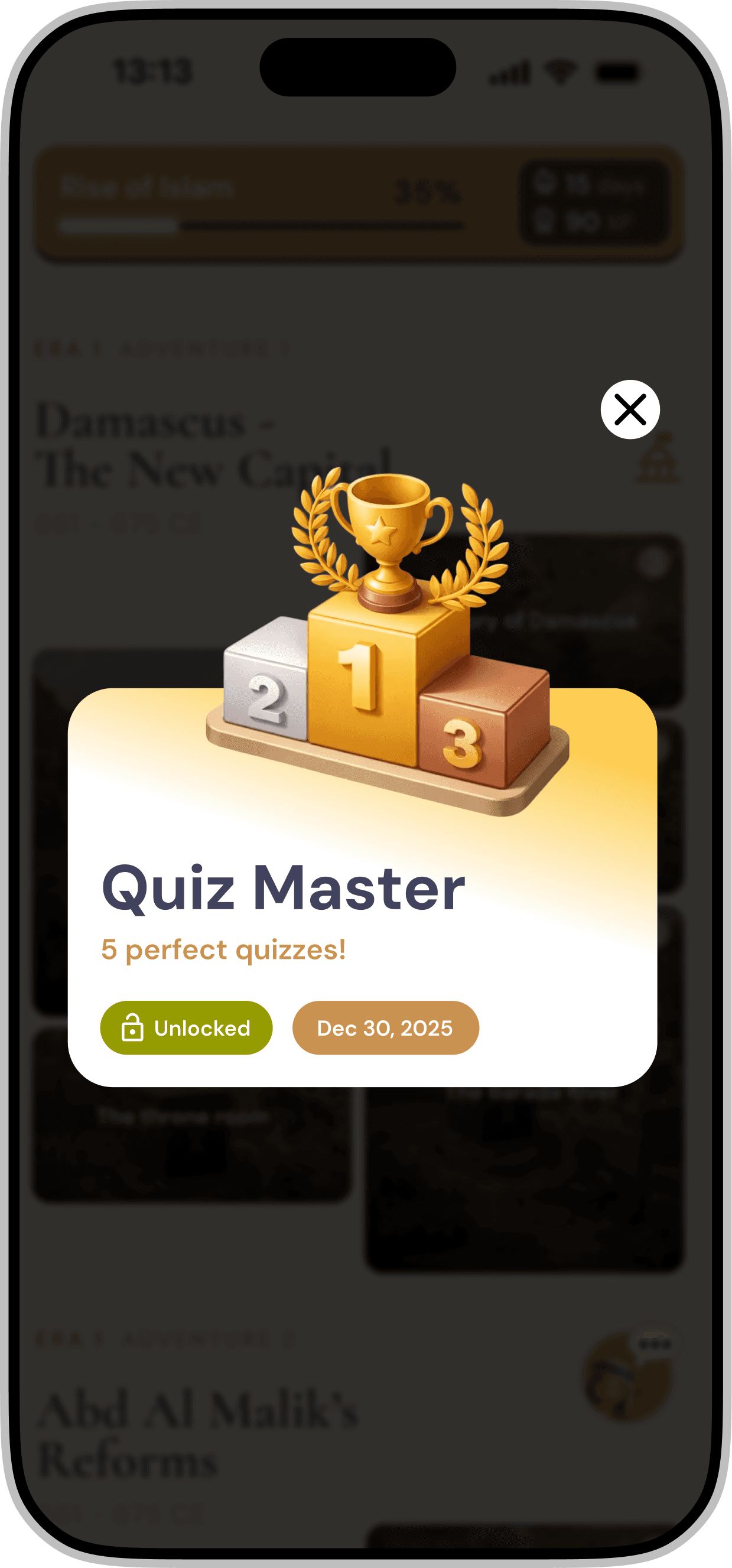 In addition to progression based badges, we introduced a variety of categories such as Night Owls, Early Risers, and Quiz Masters. This approach ensures that different user behaviors are recognized, allowing more users to earn their first badge early in the experience and feel acknowledged within the system.