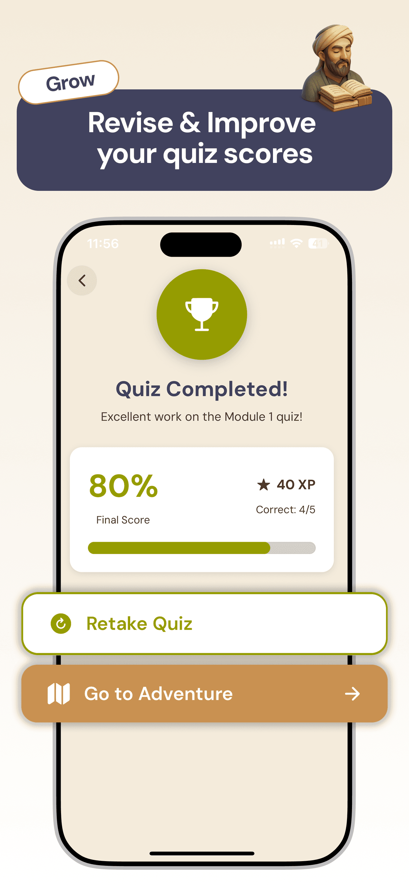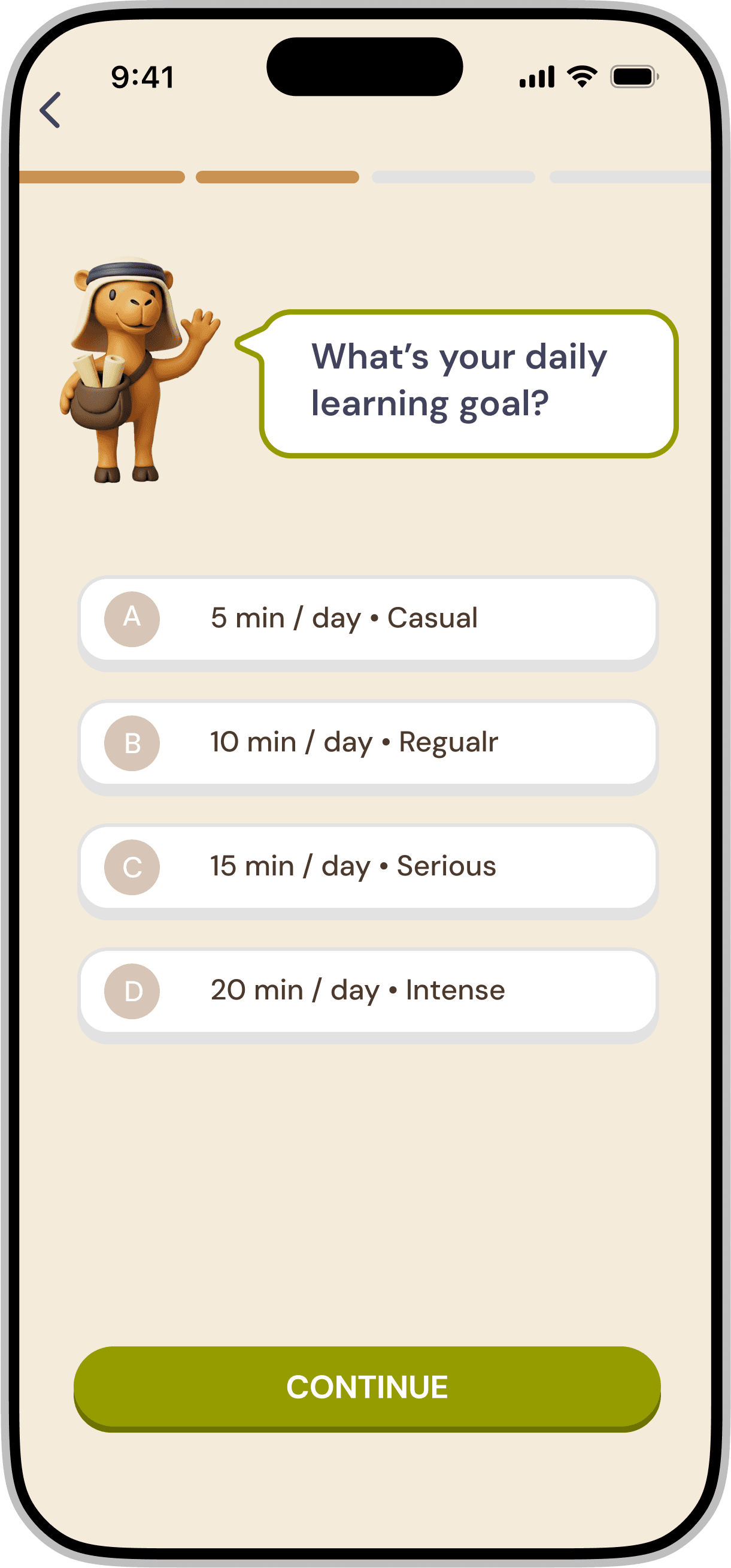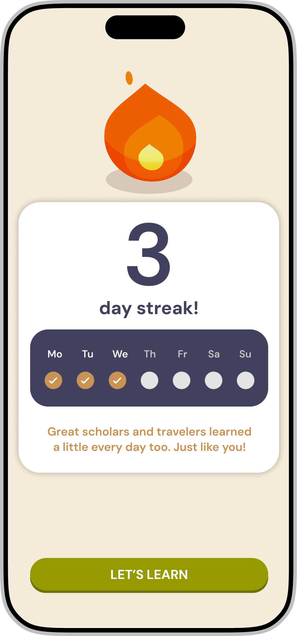 This subtle layer of personality helps make the experience feel more human and engaging, while still keeping the interface clear and focused on the learning journey.
